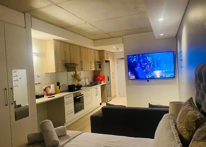The 1-room Cozy Studio In Woodstock Quarters Cape Town is located just 0.8 km from Woodstock train station and approximately 5 minutes' walk from Stockton Goods. Guests can take a dip in a rooftop swimming pool to relax after a long day.